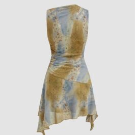 Mesh Floral Print Twist Asymmetric Vacation Vibe Mini Dress