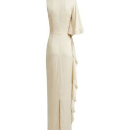 Factory Direct Custom Champagne Satin Ruffle Slit Maxi Dress