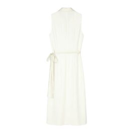 White Sleeveless Blazer Midi Dress Satin Lapel Wrap Tie Waist