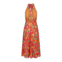 Colorful Floral Halter Maxi Dress Sequin Print Chiffon Flowy