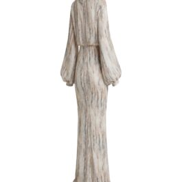 Factory Direct Custom Beige Abstract Stripe Puff Sleeve Maxi Dress