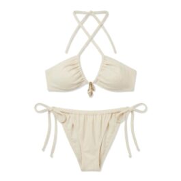 OEM Beige Convertible Tie-Side Bikini Set with Shell Pendant