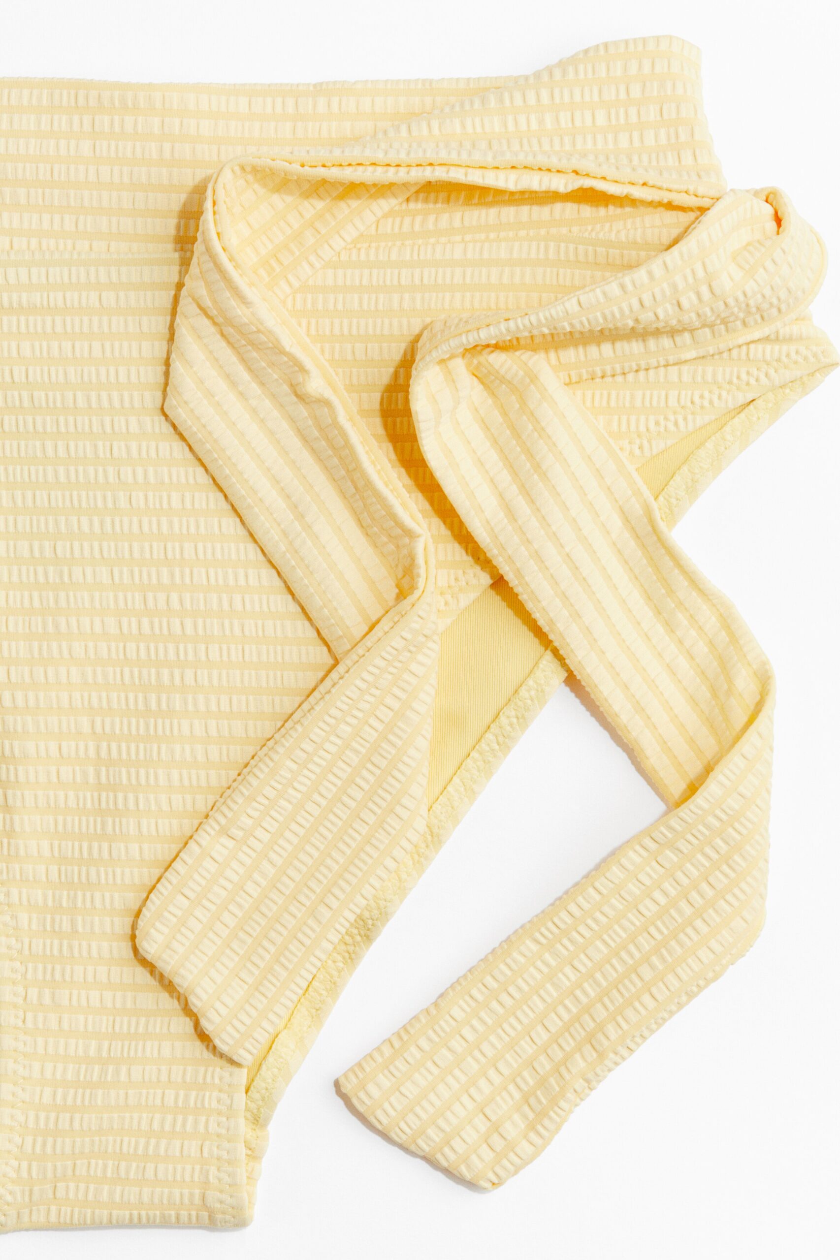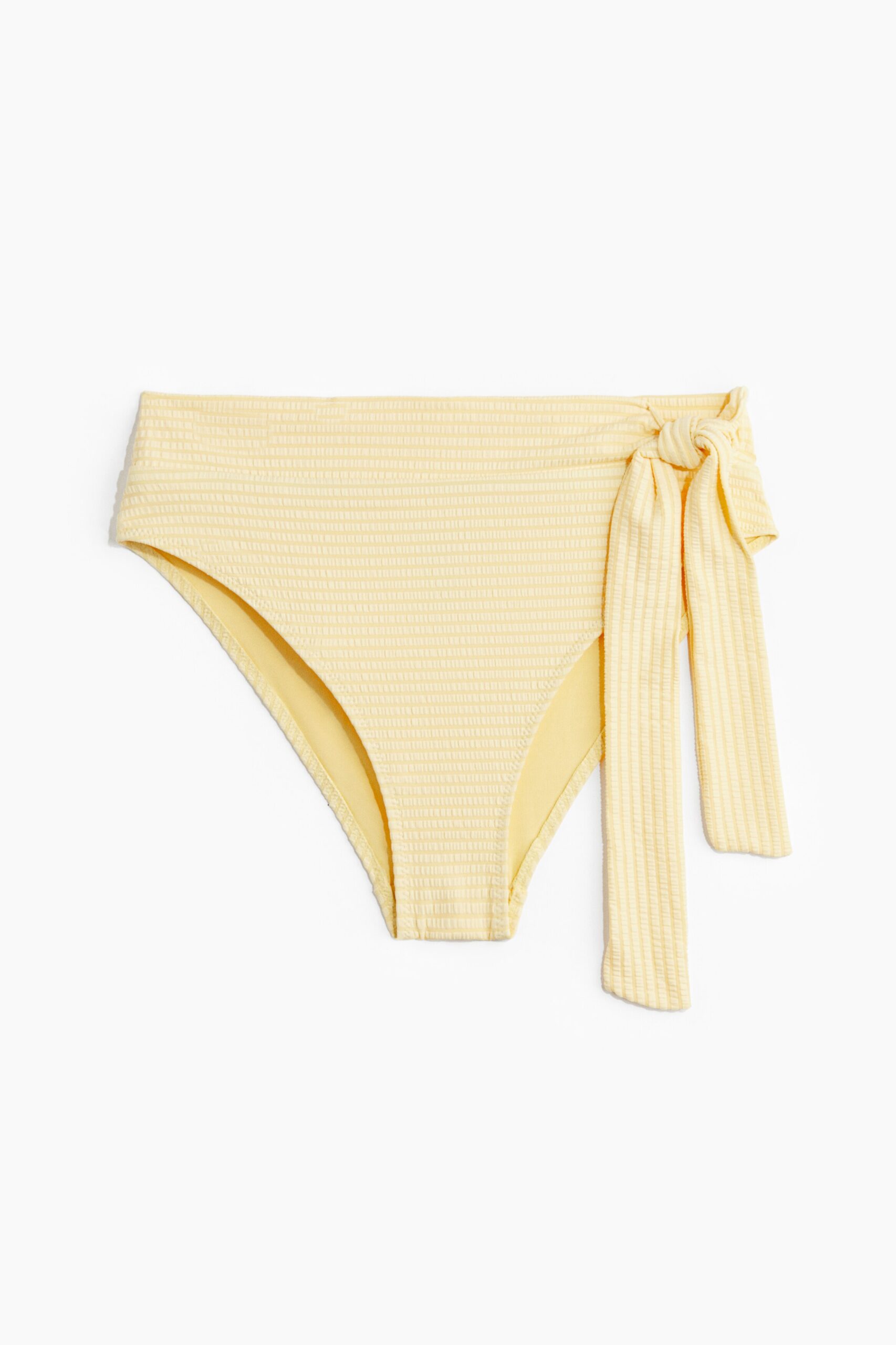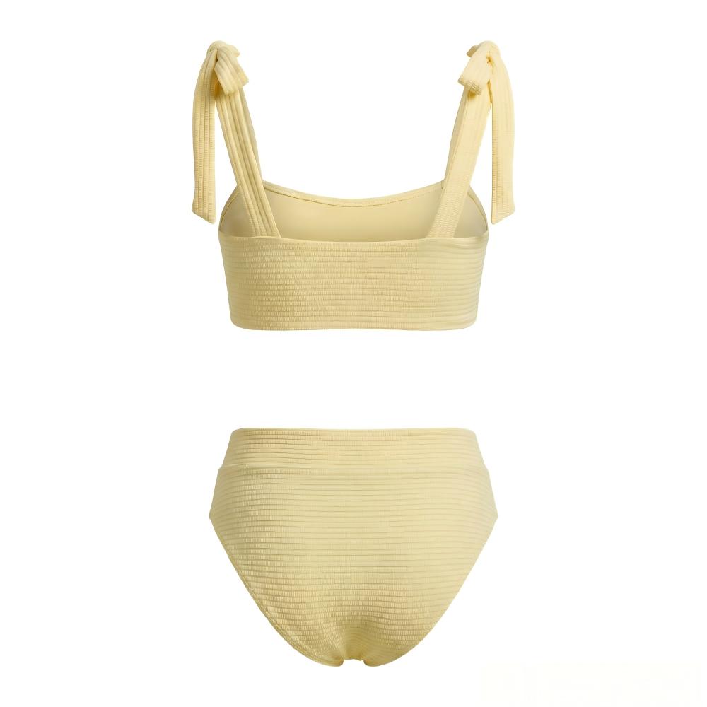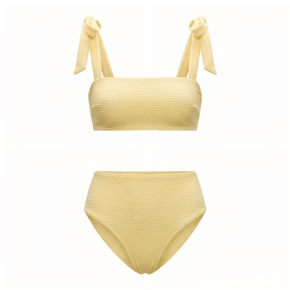Custom Pale Yellow Ribbed Tie Shoulder High-Waisted Bikini Set