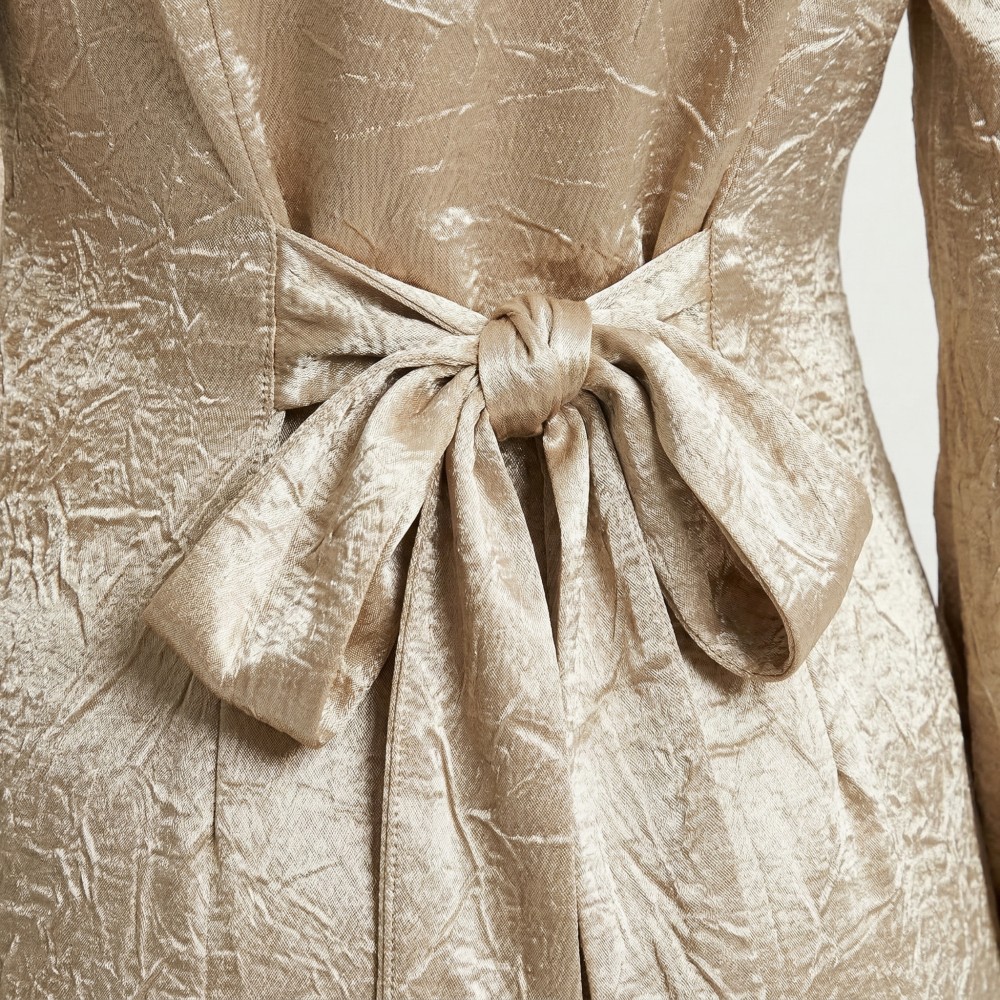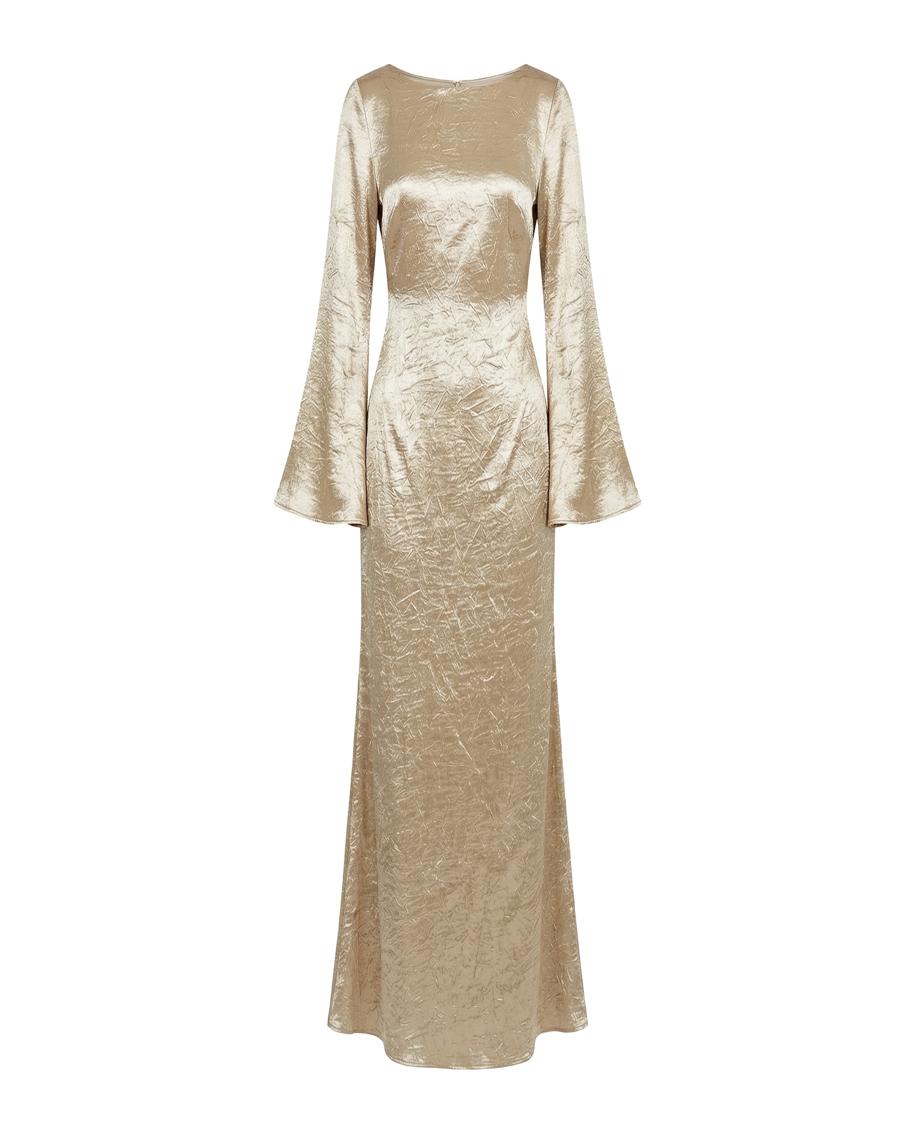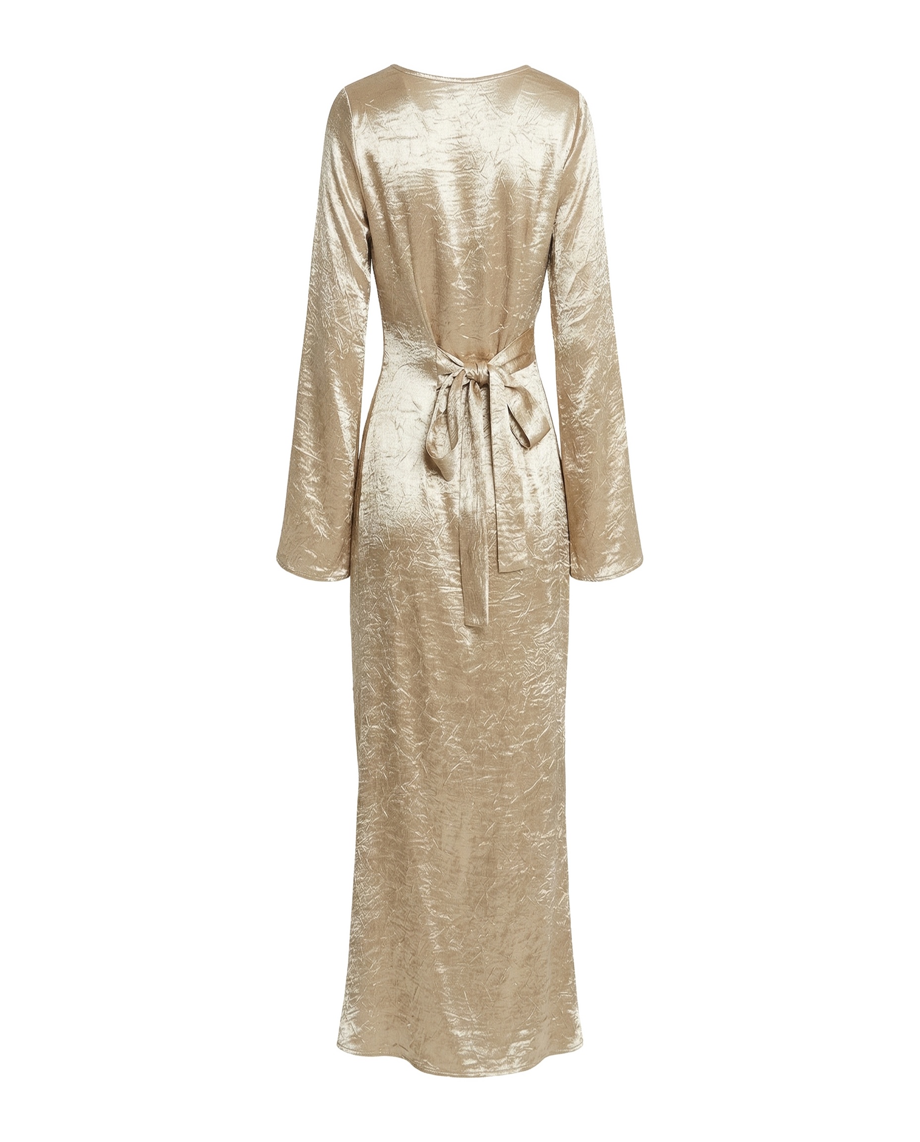 Factory OEM Custom Champagne Crinkled Satin Bell Sleeve Maxi Dress Muslim Clothes